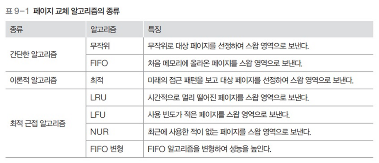 - ๋ฉ๋ชจ๋ฆฌ ๋ด ์ ์ฅ๋ ํ์ด์ง ์ค ์ด๋ค ํ์ด์ง๋ฅผ ๊ต์ฒดํ ์ง ๊ฒฐ์ ํ๋ ์๊ณ ๋ฆฌ์ฆ, ๋ฌผ๋ฆฌ์ ์ธ ๋ฉ๋ชจ๋ฆฌ ๊ณต๊ฐ์ด ํ์ ์ ์ผ ๋ ํ์ด์ง ๋ถ์ฌ๊ฐ ๋ฐ์ํ๋ ์ํฉ์์ ์๋ก์ด ํ์ด์ง๋ฅผ ์ ์ฌํ๊ธฐ ์ํด ๊ธฐ์กด ํ์ด์ง ์ค ์ด๋ค ํ์ด์ง๋ฅผ ์ ๊ฑฐํ ์ง ๊ฒฐ์ ํ๋ ์ญํ ์ ํ๋ค